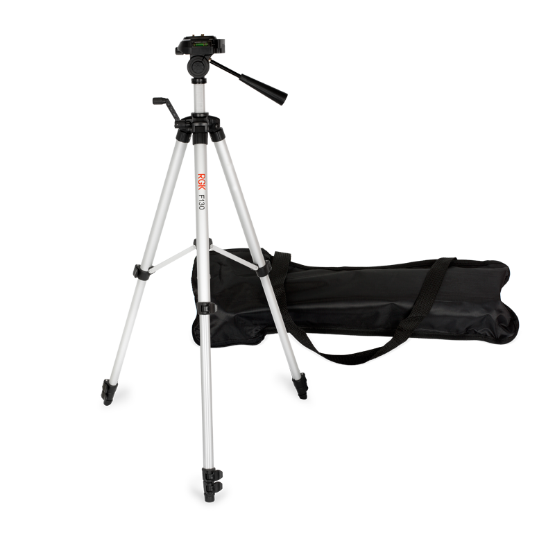 В сложенном состоянии штатив RGK F130 очень компактен. Удобный комплектный чехол с ремнем упрощает транспортировку и хранение.