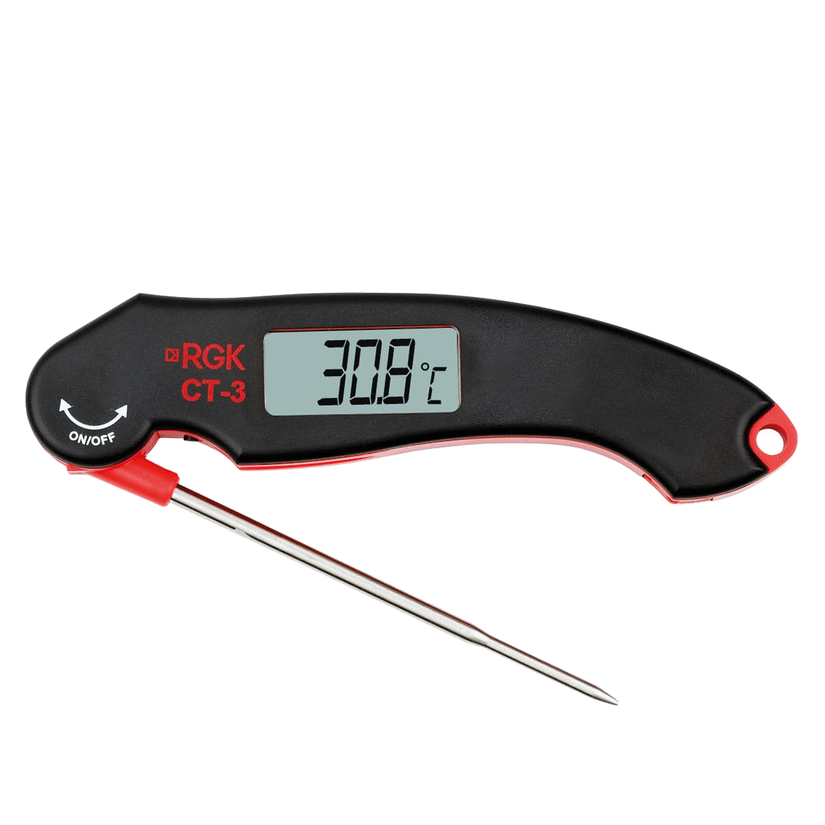 Прибор весит всего 49 г, его удобно брать с собой на рынок, в магазин или на производство, где требуется провести инспекцию в полевых условиях. Эргономичная форма и небольшой вес также помогают брать множественные пробы при масштабных проверках. Предусмотрена петля, за которую термометр для мяса, выпечки и других продуктов RGK CT-3 можно подвесить на кухонный крючок или на пояс.