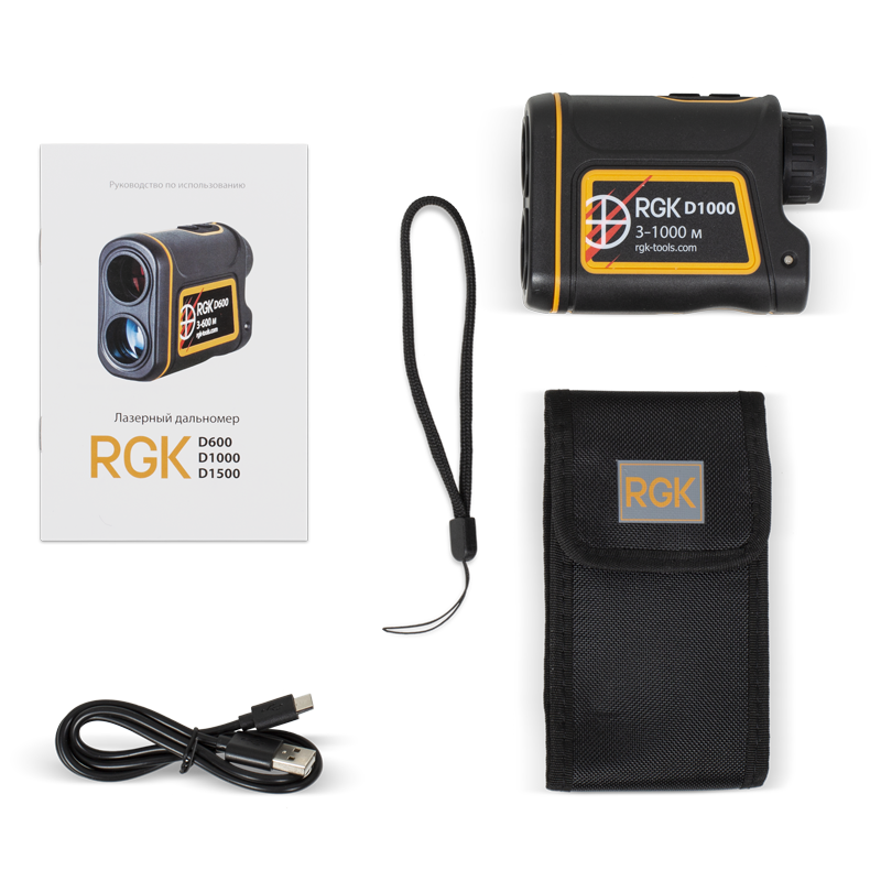 Корпус RGK D1000 выполнен из качественного пластика и приспособлен к постоянному ношению прибора с собой. Измерения с его помощью одинаково эффективны при температурах от -20° до 50°C. Этот дальномер отличается небольшим весом и компактными размерами, что позволяет положить его в карман куртки или носить на ремне в специальном чехле, поставляемом в комплекте. В качестве источника питания RGK D1000 прибор использует батарею типа CR2, благодаря низкому энергопотреблению прибора обеспечивающую до 8000 измерений. Автоматическое отключение через 20 секунд бездействия помогает экономить заряд батареи.