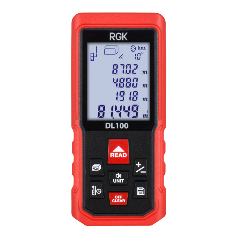 Лазерный дальномер RGK DL100 измеряет расстояния до 100 метров c точностью ±2 мм и оснащен угломером. Ключевая особенность прибора - опция «помощник маляра», которая поможет быстро вычислить сумму площадей стен помещения. Таким образом вы сможете точно рассчитать необходимый объем краски, штукатурки и других материалов.