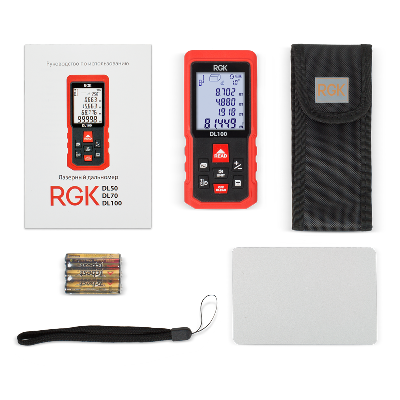 - Звуковой сигнал оповещает об измерении или об ошибке, что удобно, когда вы не видите экран лазерного дальномера RGK DL100. При необходимости функцию можно отключить.