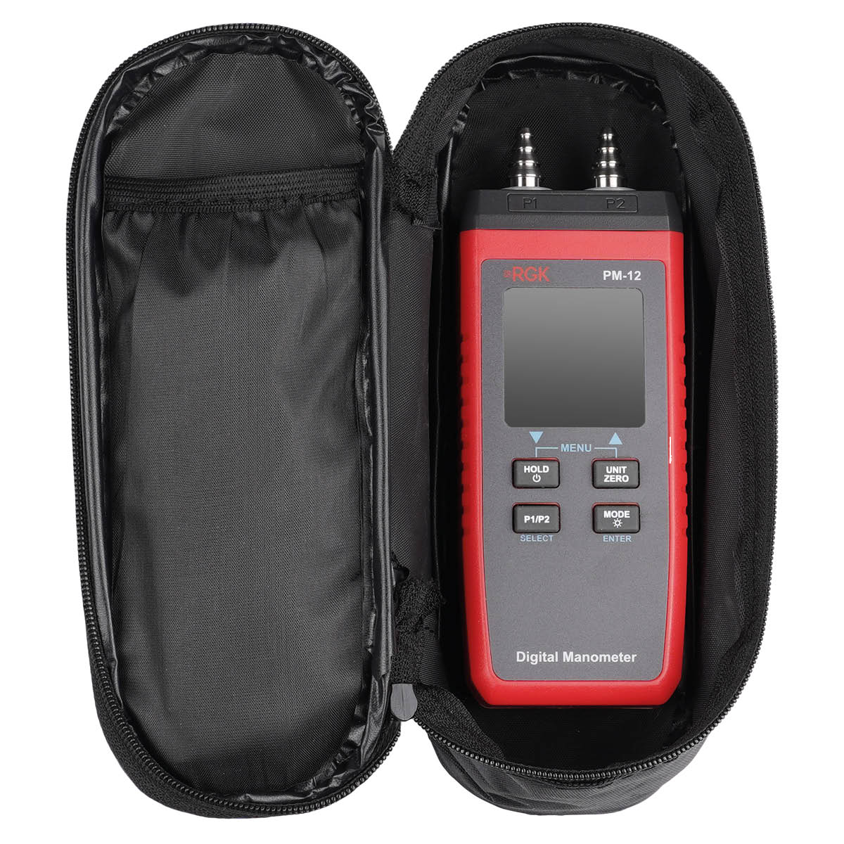 Цифровой манометр RGK PM-12 - двухканальный прибор для измерения манометрического и дифференциального давления, который часто используется при настройке и пусконаладке систем вентиляции, отопления и любых других, где есть движение воздушных масс.