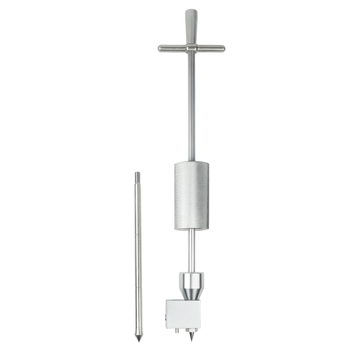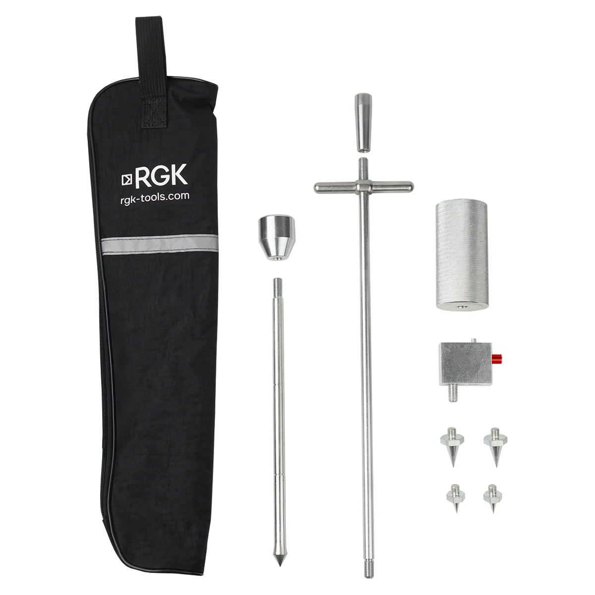 - Высокий эксплуатационный ресурс – подверженный наибольшему физическому воздействию наконечник стержня, используемого для контроля уплотнения грунта и сыпучих материалов, упрочнен методом термической закалки, а большая и малая конусные насадки, применяемые при проверке горячих и холодных асфальтобетонных покрытий, в случае износа могут быть заменены на запасные из комплекта поставки.