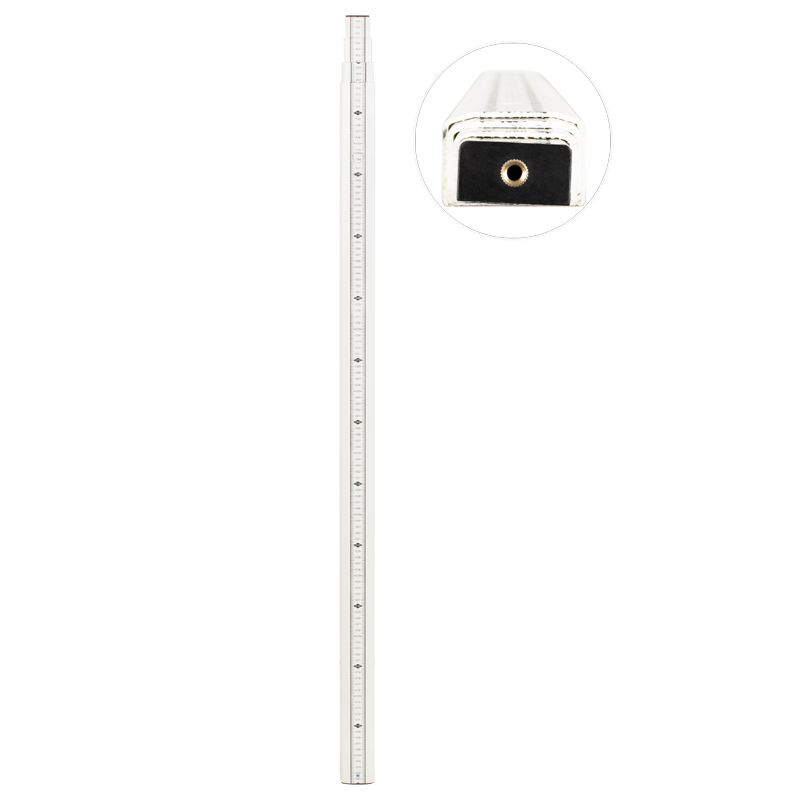 Торцы защищены крепкими пластиковыми заглушками, предохраняющими конструкцию от падений и истирания при контакте с бетоном или гравием. Обе измерительные шкалы отличаются износостойкостью и устойчивы к выцветанию.