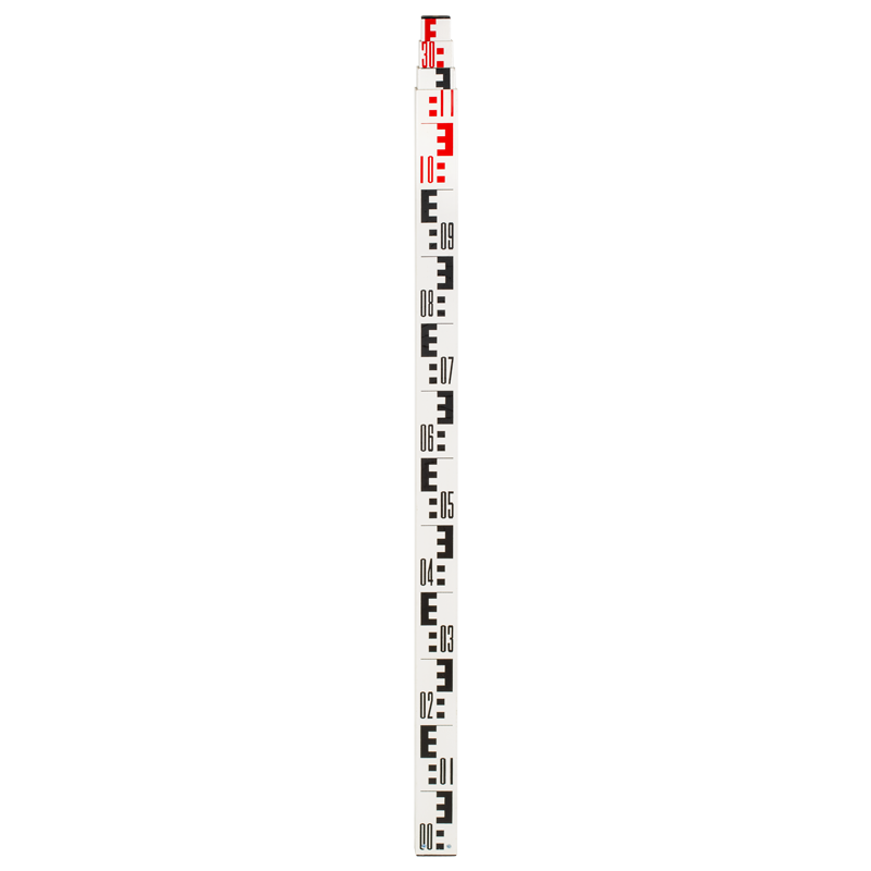 Шкалу с Е-градуировкой хорошо видно издалека даже в сложных погодных условиях. На обратной стороне инструмента расположены миллиметровые деления, которые позволяют работать с высокой точностью. За счет небольшого веса устройство не утомляет специалиста при постоянных перемещениях, характерных для геодезических измерений.