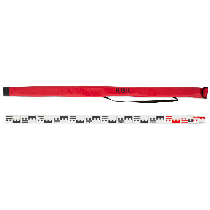 В сложенном состоянии нивелирная рейка RGK FB-4 занимает немного места (1,25 м.) и легко умещается в салон или багажник машины для перевозки. Еще один удобный вариант транспортировки - с помощью прочного комплектного чехла с ремнем.