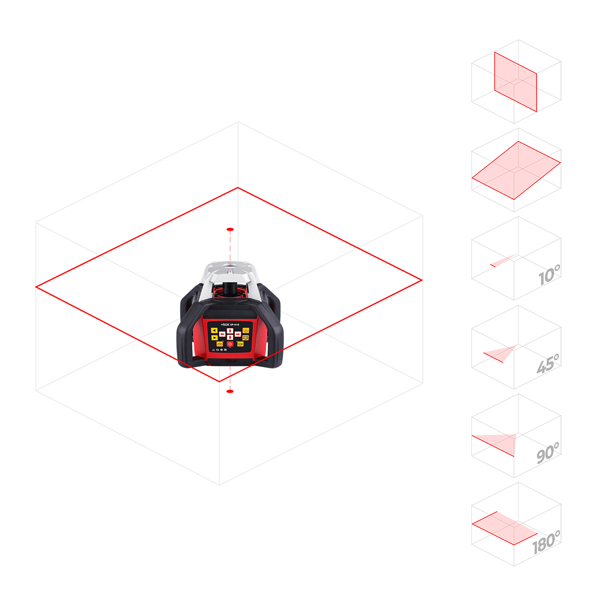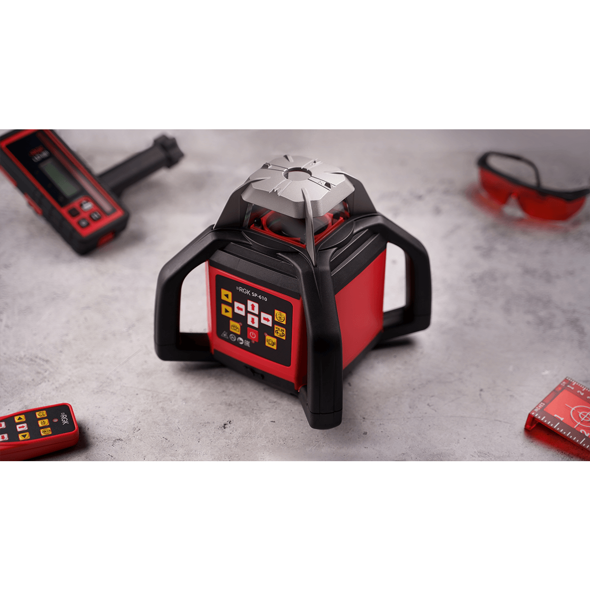 Благодаря удобной панели и интуитивно понятным иконкам прибор прост в управлении и готов к работе сразу же после включения. Небольшой вес и удобная ручка обеспечивают высокую мобильность прибора. Измерения можно производить как со штатива, так и с любой ровной поверхности. В комплект с нивелиром входит пульт дистанционного управления, обеспечивающий полный доступ ко всем функциям нивелира на значительном расстоянии. Корпус RGK SP-610 выполнен из качественных материалов и полностью соответствует стандарту защиты IP54, надёжно оберегая нивелир от пыли и влаги.