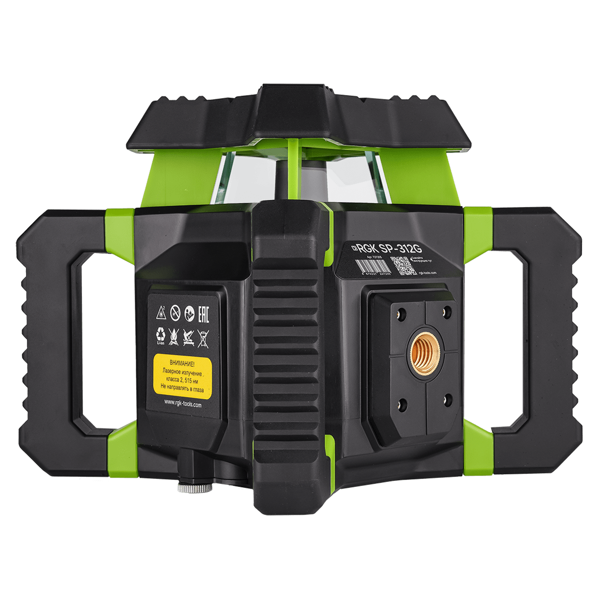 Рассчитанный на использование в жестких условиях строительной площадки, ротационный лазерный нивелир RGK SP-312G соответствует категории пыле- и влагозащиты IP65. Конструкция изделия, с дополнительной усиленной накладкой над излучающей системой, снабженной ребрами жесткости, и ручками, выполняющими роль дополнительных бамперов, минимизирует риск повреждения механизма из-за случайных ударов, падений и прочих физических воздействий. Проецирующий прибор способен функционировать в любое время года, сохраняя работоспособность в диапазоне температур от –20 до +50°C.