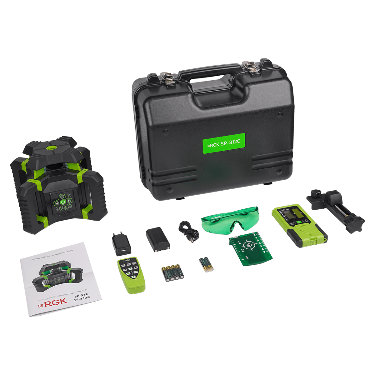 Ротационный нивелир RGK SP-312G представляет собой профессиональный проецирующий прибор строительного назначения, оборудованный аккумуляторным питанием, который характеризуется высокой прочностью и простотой использования. В отличие от базового варианта, G-модификация оборудуется лазерным излучателем зеленого цвета, луч от которого лучше визуально различим для человеческого глаза, по сравнению с красным лазером. Включенный в комплект поставки приемник излучения обеспечивает возможность выполнения работ на площадках до 600 м.