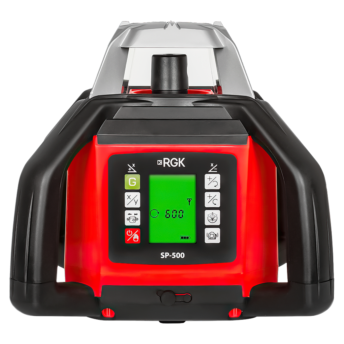 В комплект поставки RGK SP-500 включен беспроводной пульт для контроля рабочего процесса и управления всеми функциями на расстоянии до 60 м. Пульт оборудован наглядным экраном для отображения статуса уровня.