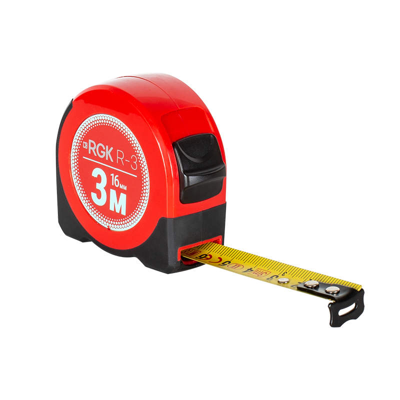Измерительная рулетка RGK R-3 со стальной лентой длиной 3 метра выполнена в компактном ударопрочном корпусе и имеет клипсу для крепления на поясе. Небольшие размеры позволяют хранить рулетку в ящике с инструментами.