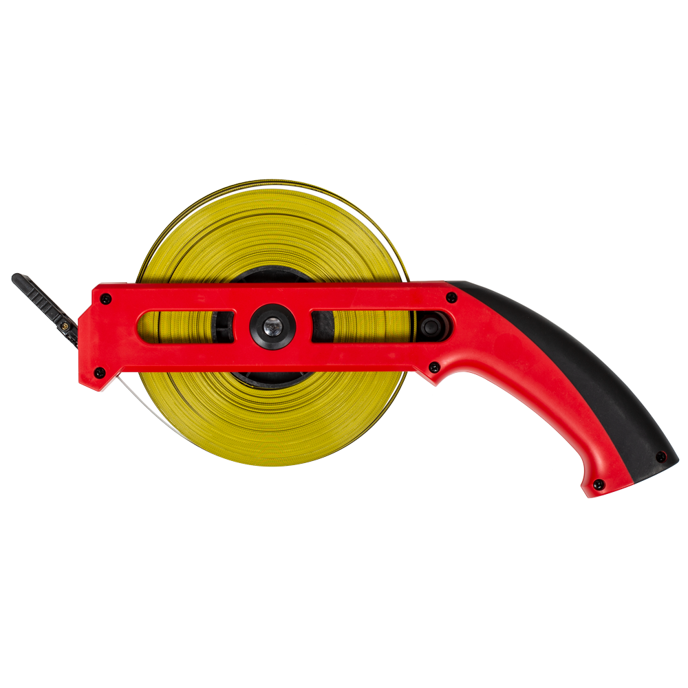 Геодезическая рулетка RGK RZ50 снабжена удобной нескользящей рукояткой, которая помогает крепко удерживать инструмент при быстром разматывании. Возвращение ленты в корпус производится механически, путем вращения специальной ручки, пользоваться которой комфортно в перчатках. Аксессуар компактен, легко умещается в рабочую сумку, благодаря чему упрощается транспортировка и переноска к месту проведения изысканий. Фирменный красный цвет, в который окрашен инструмент, помогает легко отыскать его среди других принадлежностей, а также повышает безопасность при измерениях со строительной рулеткой RGK RZ50 вблизи тяжелой техники.