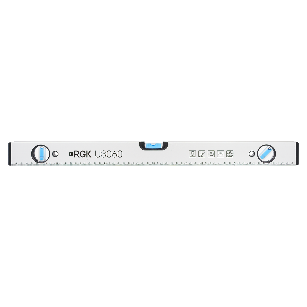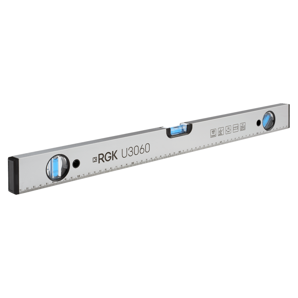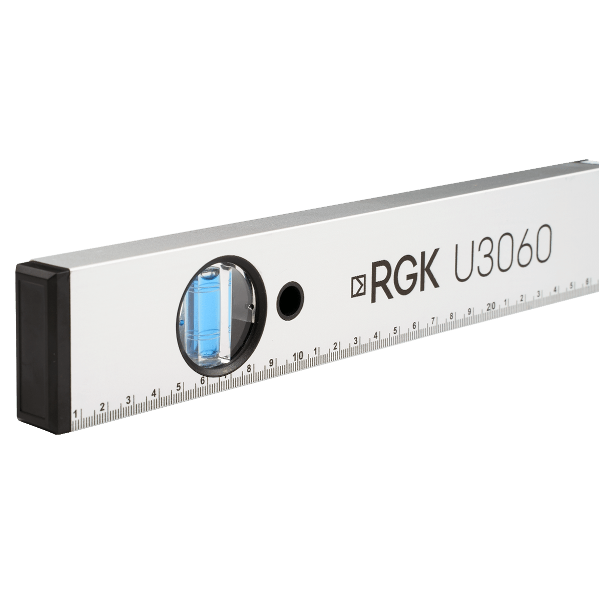 Нанесенная в нижней части уровня RGK U3060 миллиметровая шкала позволяет выполнять измерения и мелкую линейную разметку без использования дополнительного мерного инструмента.