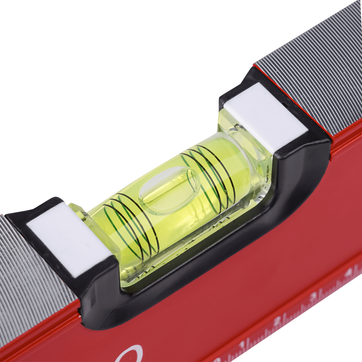 Принцип работы выстроен на постоянном стремлении жидкости занимать горизонтальное положение. Пузырек воздуха в акриловой ампуле, таким образом, всегда оказывается наверху. Если поверхность идеально ровная, он остановится посередине. Для удобства имеются специальные риски, которые помогают корректно оценить положение. Точность пузырька 0.5 мм/м гарантирует достоверность показаний.